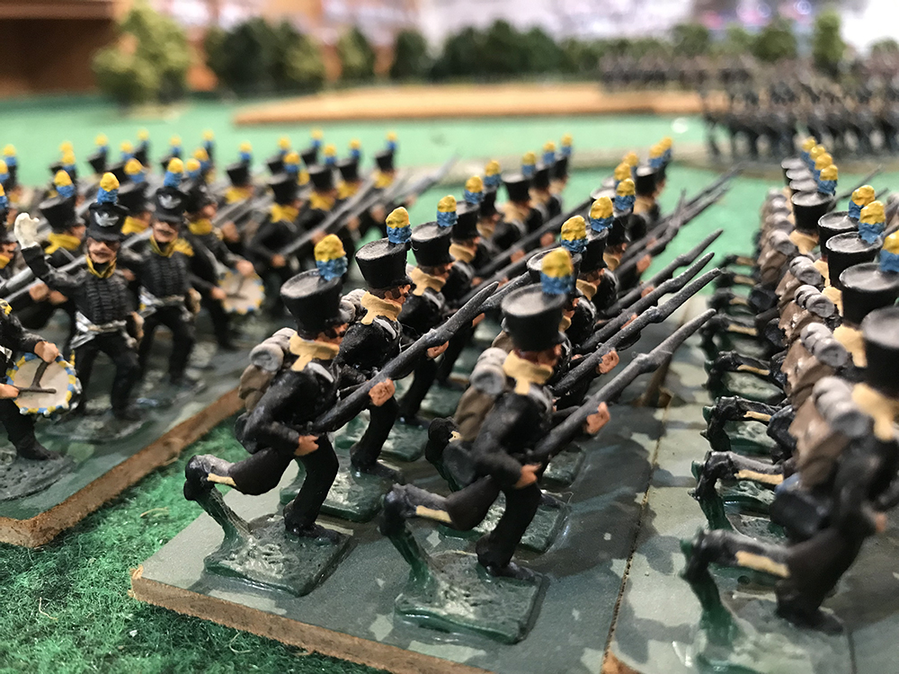 Figures w/blue facings and tall black plume
